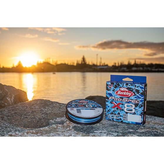 The Berkley ProSpec X8 is a premium, super-smooth braid line with a unique blue camo design. Itβs tough, sensitive, easy to use, and perfect for spin, low profile or overhead combos. One of the strongest braids out there.